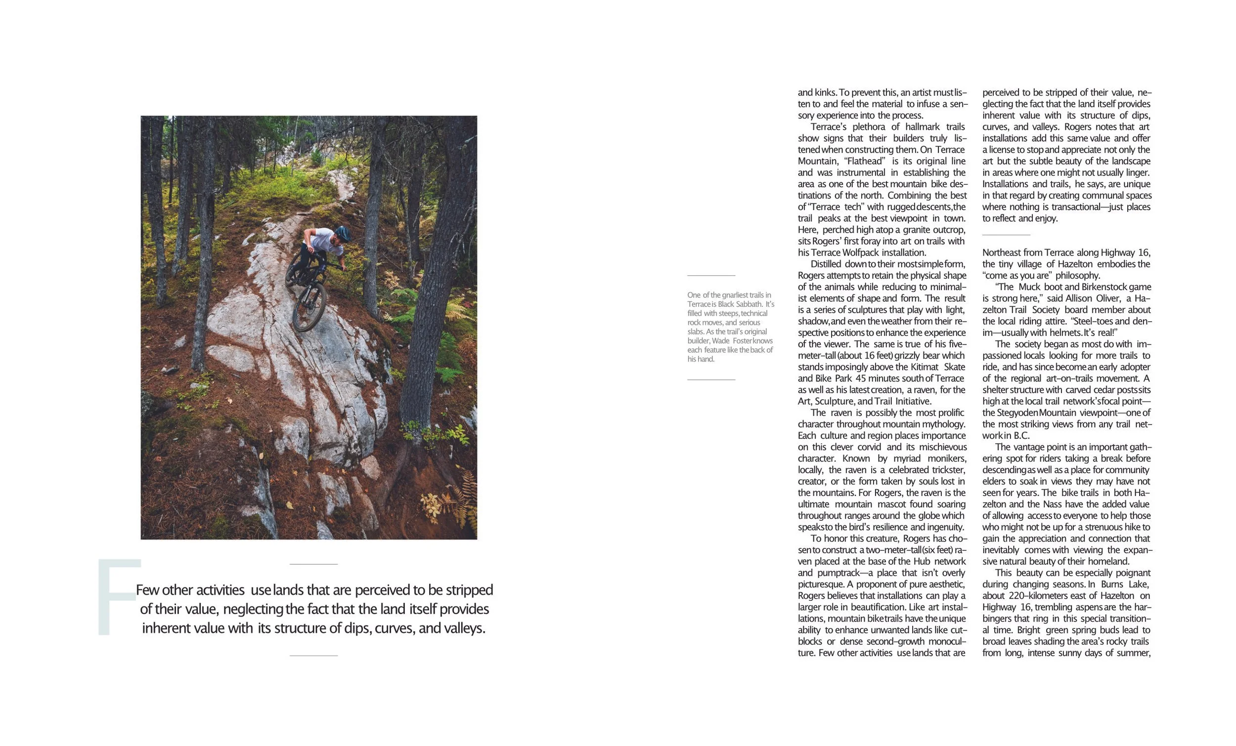 “We are honored to be featured in Freehub Magazine,” said Steve Rogers, founder of Great Bear Ironworks. “The Terrace Wolves project holds a special place for us, but our latest creation for the MTB Association of BC—a massive Raven sculpture—is something we’re incredibly proud of. Both projects reflect our commitment to creating art that resonates with the community and the landscape.”