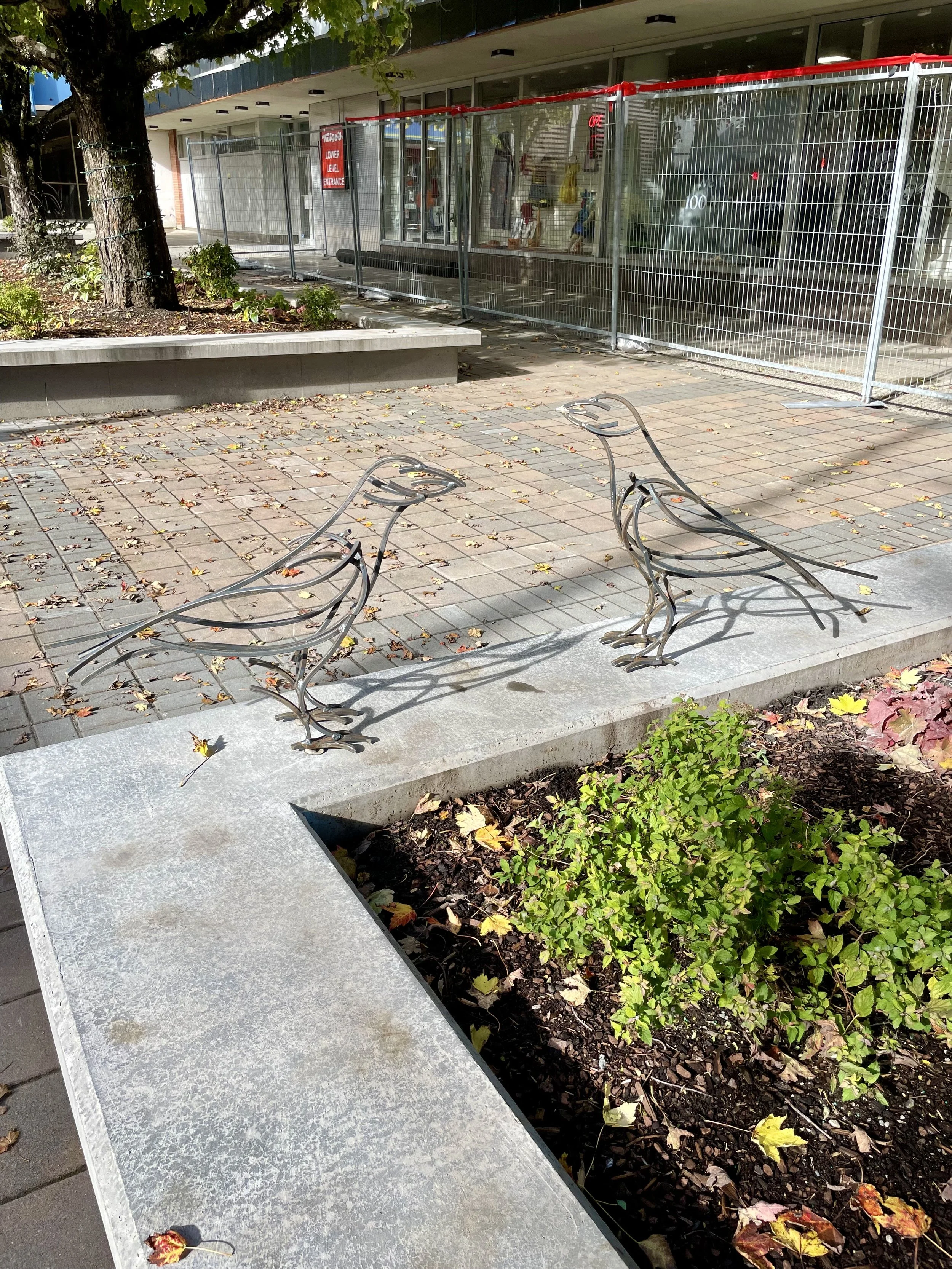The installation, designed to complement newly constructed planter boxes, adds a sense of life and connection to the downtown core. The Ravens reflect the region's natural beauty, while also representing transformation, intelligence, and community—powerful themes rooted in the area’s cultural identity.